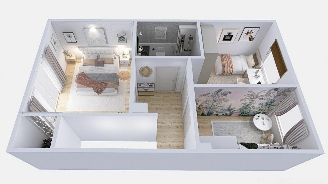 Welcome - a new estate of two-bedroom houses for sale. Each house has five or four rooms: