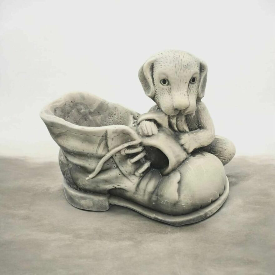 Doniczka but z pieskeim figurka ogrodowa dekoracyjna Bucik