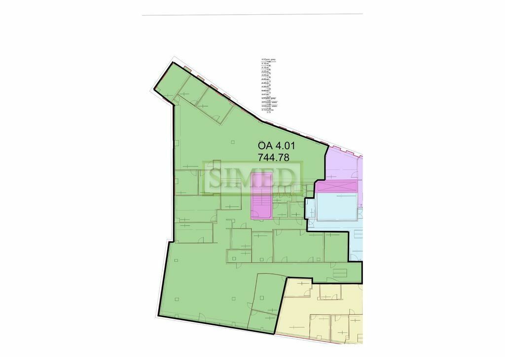 Lokal na 4 piętrze , dostępna powierzchnia to 744 m2 .
