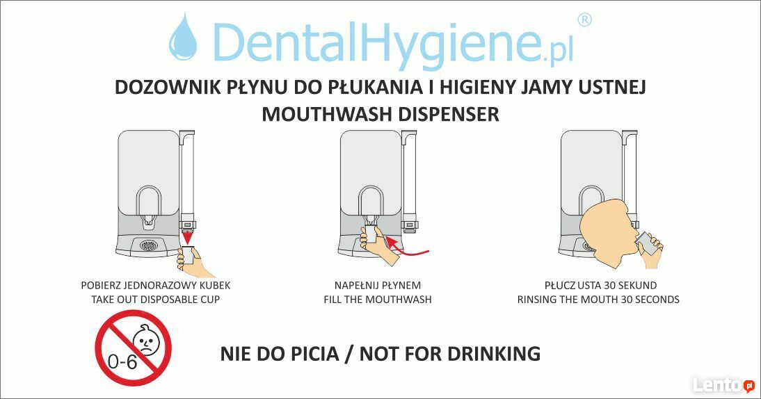 - zawsze łatwy i wygodny dostęp do jednorazowych kubeczków oraz wymiennego płynu, który zapobiega rozwojowi bakterii, wirusów i grzybów, usuwając przy okazji nieprzyjemny zapach z ust, zapewniającego odświeżenie i ochronę antybakteryjną jamy ustnej
