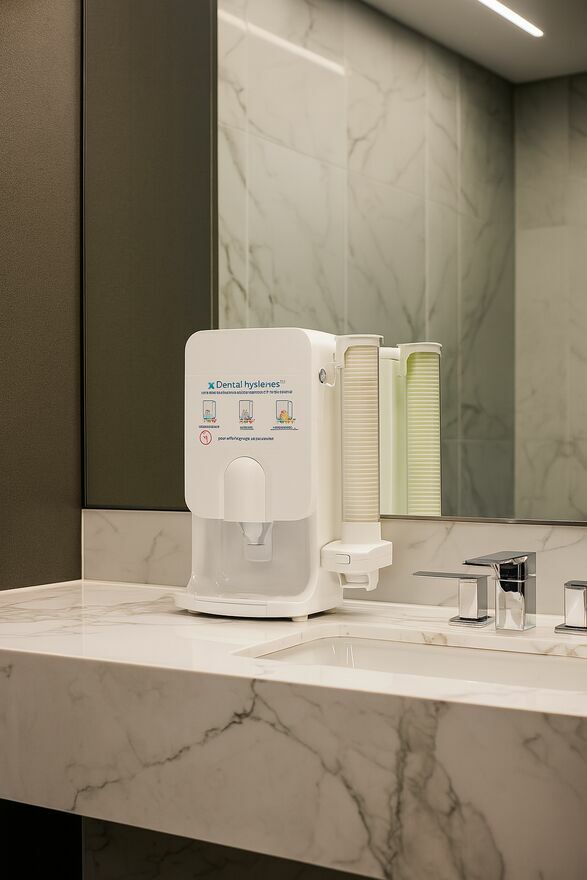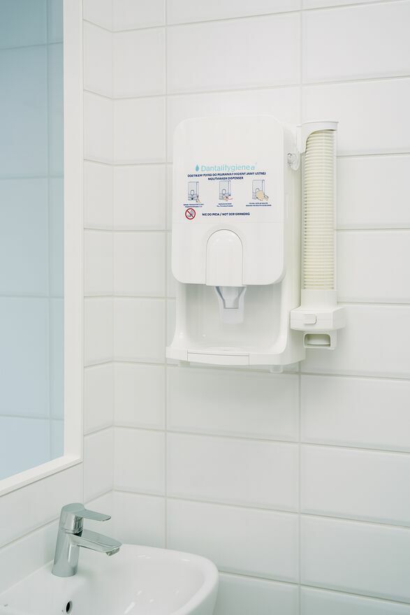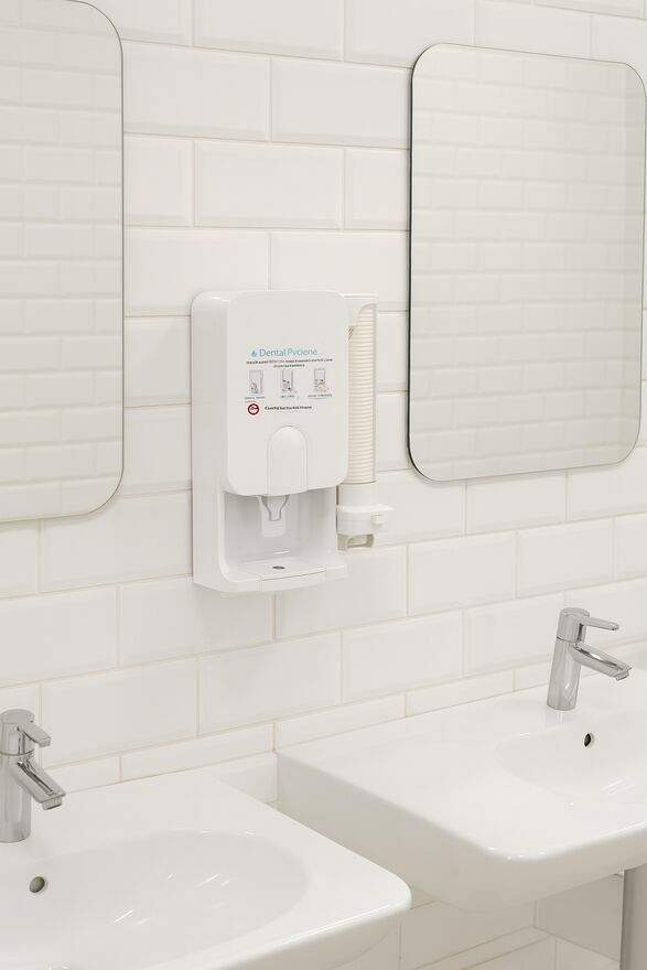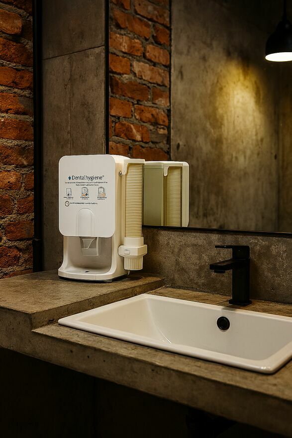 Dozownik płynu z kubeczkami do płukania higieny jamy ustnej