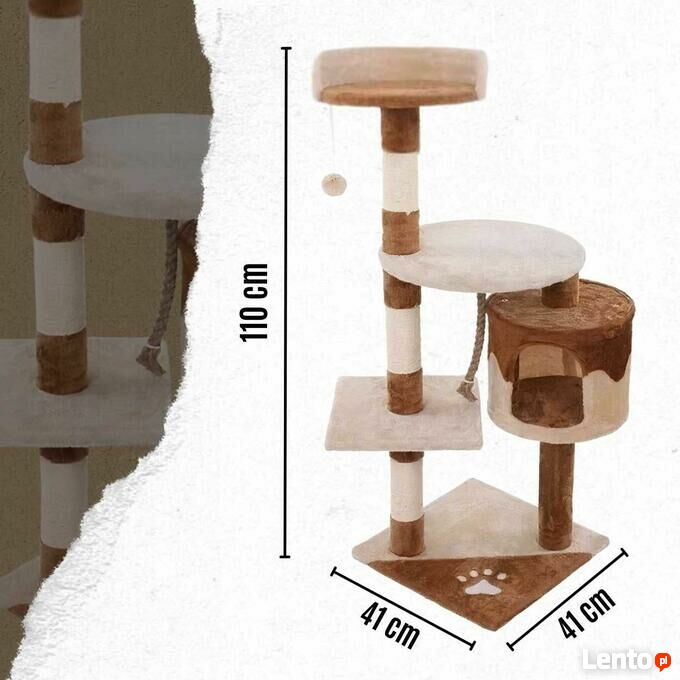 *Nasz drapak dla kota to rozwiązanie, które pozwoli zaspokoić potrzeby Twojego pupila w pełni. Wyposażony w wieżę, domek, piłkę, sznur i legowisko, drapak zapewnia wszystko, czego Twój kot potrzebuje - od drapania po zabawę i sen. Dodatkowo, drapak jest łatwy w montażu i posiada miękkie półki oraz legowisko, co zapewni Twojemu kotu maksymalny komfort. Nasz drapak jest wykonany z bezpiecznych i wytrzymałych materiałów, co gwarantuje jego trwałość i bezpieczeństwo dla Twojego pupila. Zainwestuj w drapak, który zaspokoi potrzeby Twojego kota i zapewni mu pełne spełnienie jego naturalnych potrzeb.