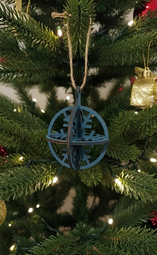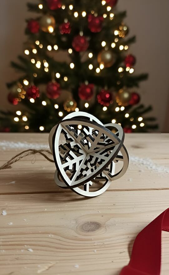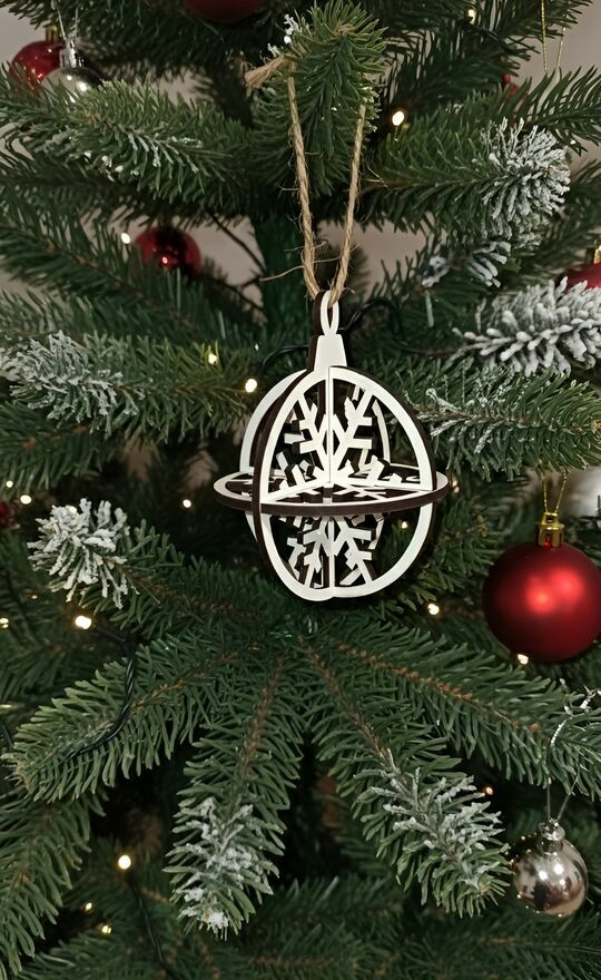 Drewniana Ażurowa Bombka 3D - Śnieżka, Śnieżynka