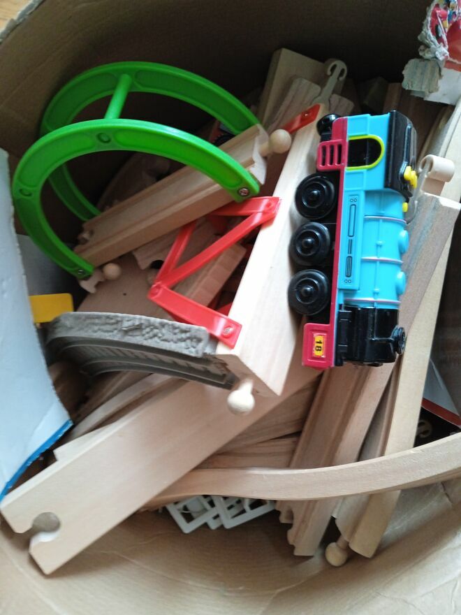 Zestaw drewniane tory ,mosty, domki, dwa komplety kolejki ok 7 kg. Plus elektryczną lokomotywą 25zł. Lokomotywa zasilana paluszkami wydaje dźwięki jeździ przód tył .Możliwa zamiana na coś fajnego o wyższej wartości. Nie zostawiam numeru telefonu z uwagi na akwizytorów - proszę wysłać nr natychmiast oddzwonię tu najchętniej na WhatApp.