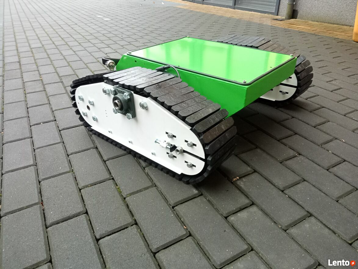 Dron naziemny na gąsienicach, robot sterowany radiowo. Waga 65 kg, akumulator 42 V 30 Ah. Ładunek do transportu wynosi 70 kg. Zasięg sterowania wynosi 1,5 km. Może być używany do transportu małych ładunków lub jako ciekawa zabawka dla dziecka.Sprawdź zainteresowanie tym ogłoszeniem