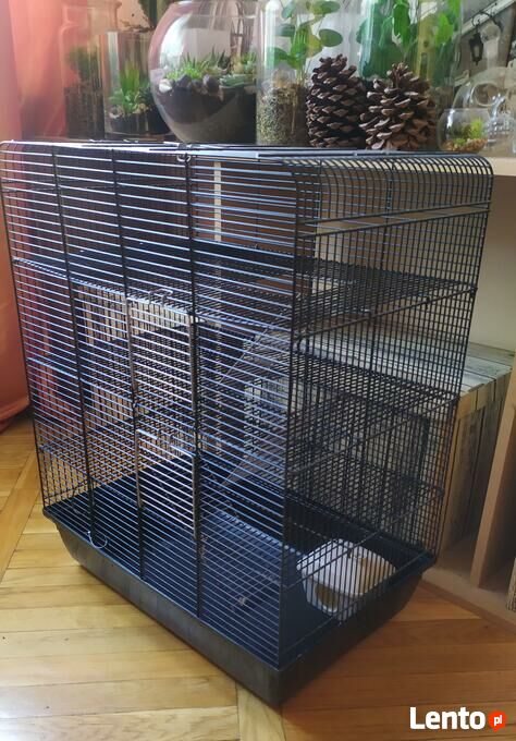 Trzypiętrowa, duża klatka dla gryzoni takich jak szczury, myszy, chomiki i koszatniczki. Stan bardzo dobry. W niektórych miejscach tylko widoczna jest obdrapana farba na kracie. Dodatkowo mały domek dla myszek lub chomików. Wymiary klatki to: wysokość 71cm, szerokość 37,5 cm, długość 57 cm. Odbiór osobisty w godzinach popołudniowych w centrum Warszawy.Brak możliwości kontaktu przez formularz z ogłoszeniodawcą, ponieważ to ogłoszenie jest archiwalne.