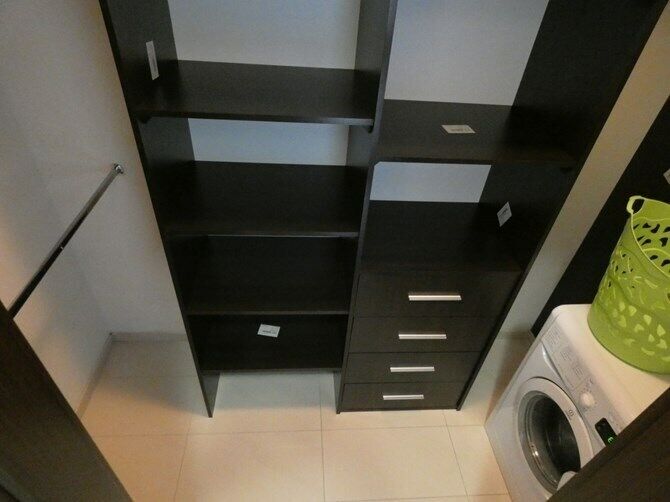 Garderoba: półki, wieszaki, pralka.
