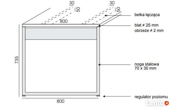 Pod blatem 2 wsporniki łączące nogi. Biurko solidne.