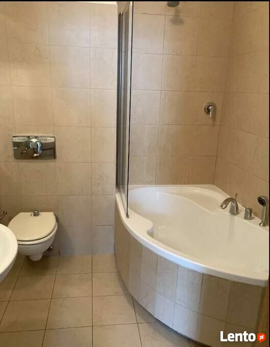 dużą wanną, osobnej pralni, holu oraz dużego balkonu. Apartament