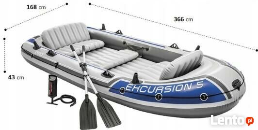 POWYSTAWOWY ,jak NOWY Mało używany w bardzo dobrym stanie pięcioosobowy ponton Excursion 5 marki Intex został wykonany z mocnego i wytrzymałego materiału winylowego (PVC).Podłoga w pontonie jest nadmuchiwana.