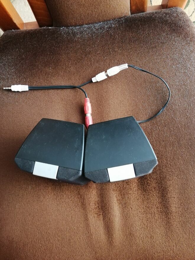 GŁOŚNICZKI JAK NOWE STEREO DO KPMUTERA ,LAPTOPA ,TABLETA I INNE. Z KABELKIEM DO PODŁĄCZENIA NA JACK 3,5 mm.Sprawdź zainteresowanie tym ogłoszeniem