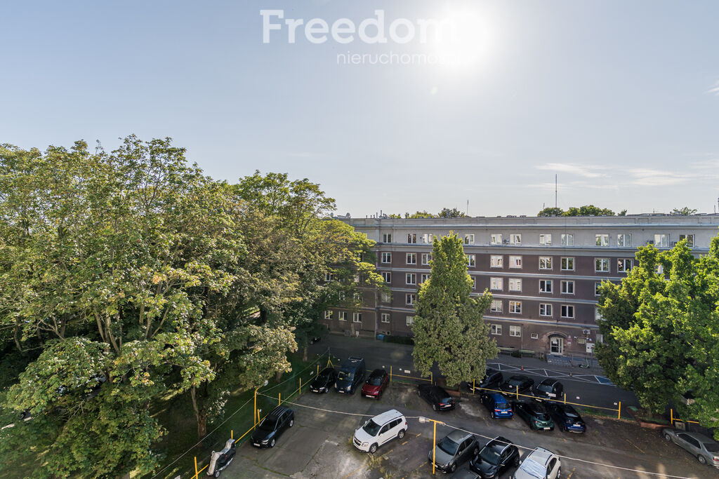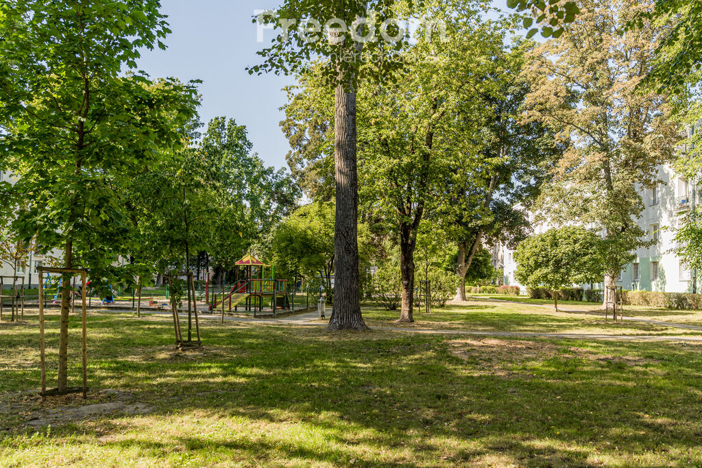 Klimatyczny widok na zieleń i kamienice Mokotowa.