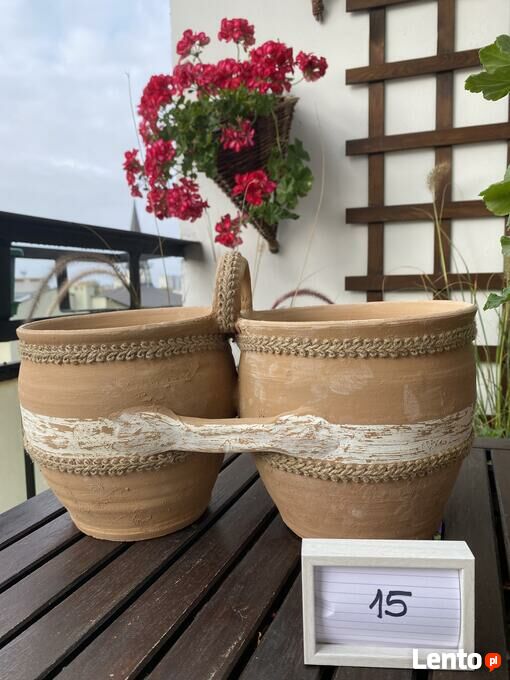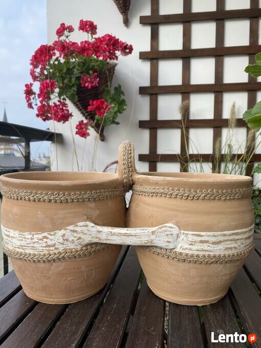 Dwojaki gliniane ręcznie robione / nieszkliwione/ zdobione jutą. Dwojaki wykonany są z naturalnej gliny.Wysokość 23 cm