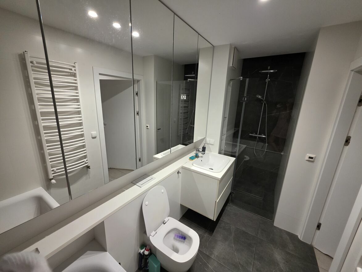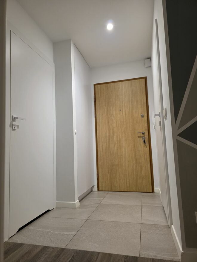 Kuchnia umeblowana i wyposażona w nowoczesny sprzęt AGD ( piekarnik, płyta indukcyjna, lodowka, zmywarka oraz mikrofalowka. Łazienka z prysznicem oraz wanną. W mieszkaniu zostala zainstalowana na przedpokoju szafa w zabudowie. W kuchni oraz łazience jest zainstalowane ogrzewanie podłogowe. W salonie jest szafka RTV. Brak kanapy.