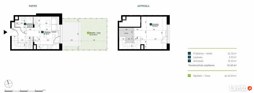 Mieszkanie posiada ogród z tarasem (24.54 m2).
