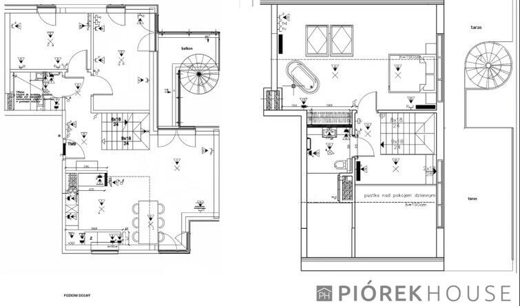 - balkon - połączony spiralnymi schodami z tarasem na poziomie