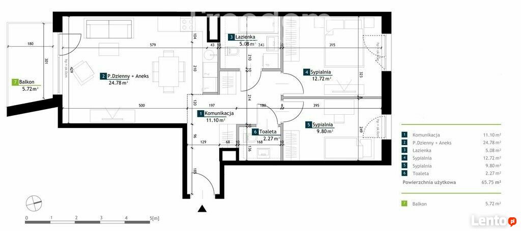 Mieszkanie posiada narożny balkon (5.72 m2).