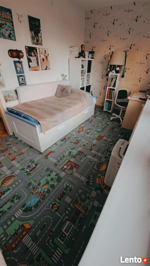 Mieszkanie składa się z salonu z balkonem z widokiem na zieleń i z klimatyzacja ok. 24m2, dwóch oddzielnych pokoi 12m2 i 10m2, kuchni z oknem ok. 7m2, łazienki, oddzielnego WC i dużego przestronnego korytarza łączącego wszystkie pokoje. Dodatkowo do mieszkania przynależy "wiatrołap", który jest jedynie do użytku właściciela mieszkania (zamykany na klucz). Na piętrze również znajduje się pomieszczenie gospodarcze (komórka lokatorska) należące jedynie do właściciela mieszkania (wejście z wiatrołapu). Na piętrze znajdują się jedynie 2 mieszkania.