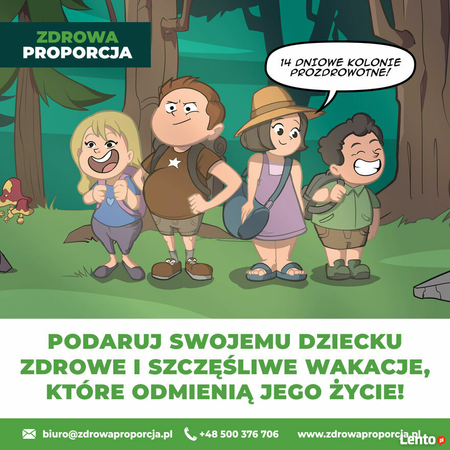 Oferujemy unikalne dwutygodniowe kolonie, które łączą aktywność fizyczną, zdrowe odżywianie i kreatywne zajęcia. Pod okiem naszych specjalistów Twoje dziecko poprawi kondycję, zyska pewność siebie i nauczy się zdrowych nawyków na całe życie.www.zdrowaproporcja.pl