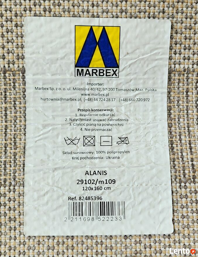 "ogłoszenie widoczne = AKTUALNE"Dywan nowoczesny Marbex Alanis 120 x 160 cm, polipropylen, płaski bez włosia. Dywan bez uszkodzeń i przykrych zapachów.