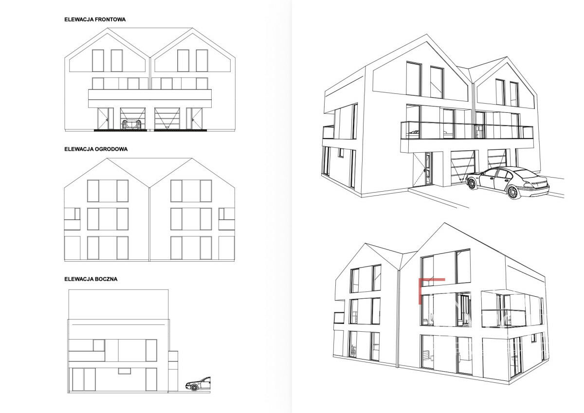 Dla działki został przygotowany projekt wolnostojącego dwulokalowego budynku mieszkalnego z wbudowanym garażem.