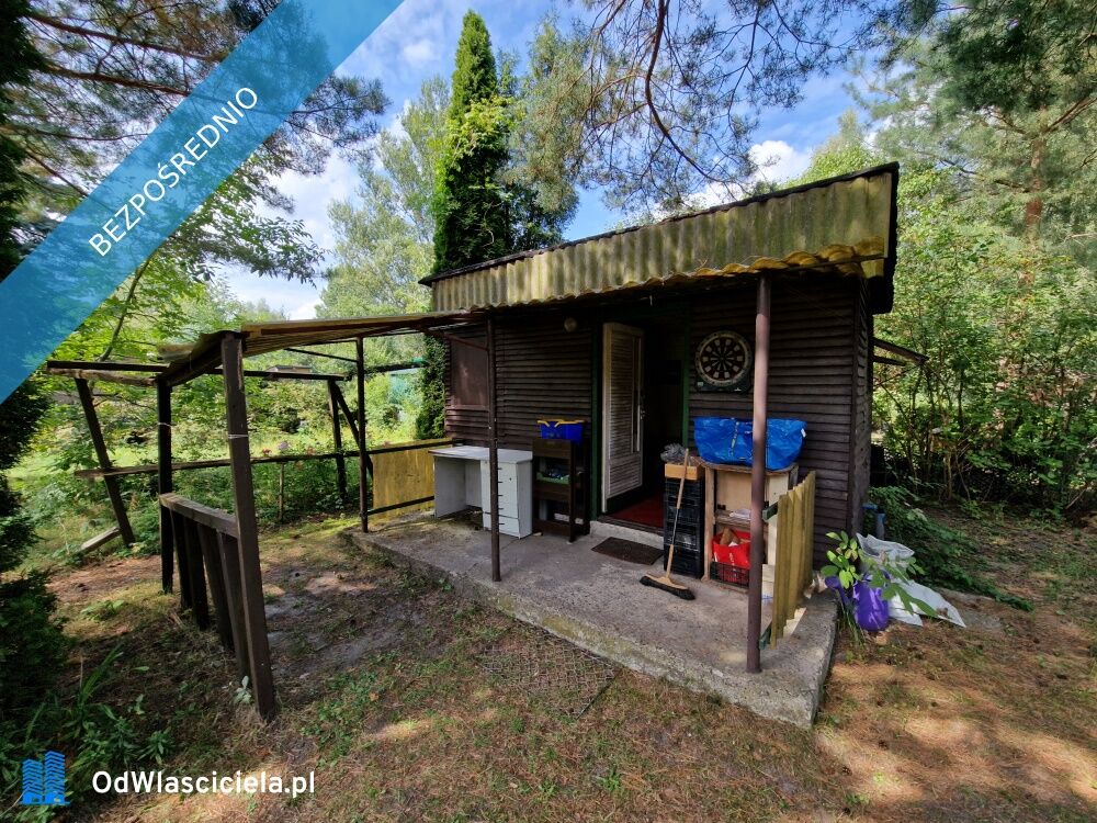 - domek ok. 20m² podzielony na pokój dzienny, zaplecze kuchenne oraz kącik gospodarczy z ujęciem wody;
