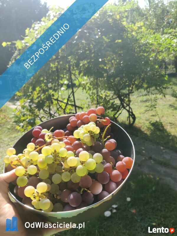 - na działce możemy znaleźć 4 duże sosny, dzięki którym w upalne dni mamy naturalną ochronę od słońca, dużo nasadzeń krzewów owocowych wzdłuż ogrodzenia (borówka amerykańska, porzeczka, malina, agrest), a także potężne pędy winogron, jeżyn oraz aroni z tyłu co daje naturalną barierę od sąsiadów;