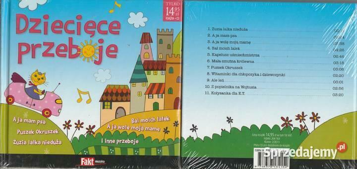 Dziecięce przeboje KSIĄŻKA + CD Zuzia lalka nieduża A ja mam psa A ja wolę moją mamę Bal moich lalek Kapelusz uśmiechmistrza Mała smutna królewna Puszek Okruszek Witaminki dla chłopczyka i dziewczynki Ale leń Z popielnika na Wojtusia Kołysanka dla E.T. ISBN 978-83-7813-415-2 kartron 84 Ogłoszenie jest aktualne dopóki znajduje się na stronie . Odbiór osobisty lub wysyłkaSprawdź zainteresowanie tym ogłoszeniem