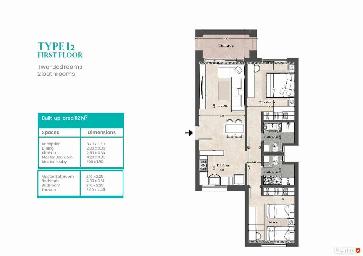 Na sprzedaż: Apartament Type I2 (2 Sypialnie, Typowe)Lokalizacja: Budynek Isabella, jednostka DI01-107 (pierwsze piętro) Powierzchnia użytkowa: 112 m² Cena: 8,508,388 EGP (ok. 255,251 EUR / 1,106,091 PLN)