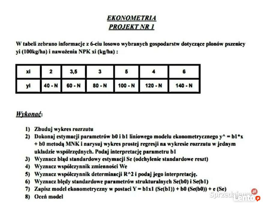 Zapisz model ekonometryczny w postaci Y = b1x1 (Se(b1)) + b0 (Se(b0)) + e (Se)