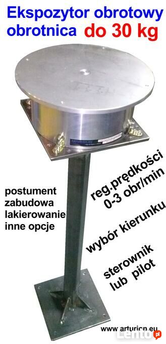 EKSPOZYTOR - Obrotnica - Kawalet Foto 3D - do 30 kg -Regulacje-FunkcjeNapędzana elektrycznie obrotowa podstawa doskonała do prezentacji niezbyt ciężkich produktów takich jak: głowy manekinów, eksponaty , małe urz. RTV oraz do filmowania i skanowania reklamowego - fotografii 3D