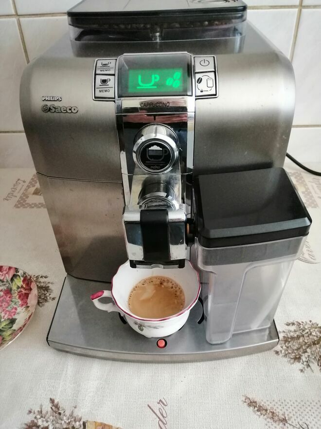 EKSPRES SAECO PHILIPS CAPPUCCINO MODEL 8838 STAN BARDZO DOBRY PO PEŁNYM SERWISIE WYMIENIONE WSZYSTKIE USZCZELKI I ODKAMIENIONY Z KARAFKĄ DO SPIENIANIA MLEKAwiesiek