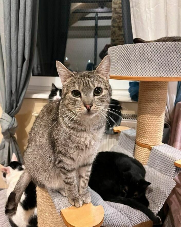 Kocha się tulić, lubi się bawić. Jest spokojną kotką.