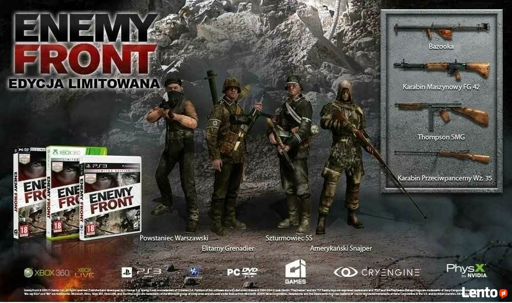 Enemy Front (gra PC DVD) Limited EditionNie znam się na grach, bo dostałam ją w prezencie, ale mimo, ze okładka jest nie po polsku to na dole na froncie jest informacja w języku polskim więc zakładam, ze gra jest w PL. Widoczne na foto 1.