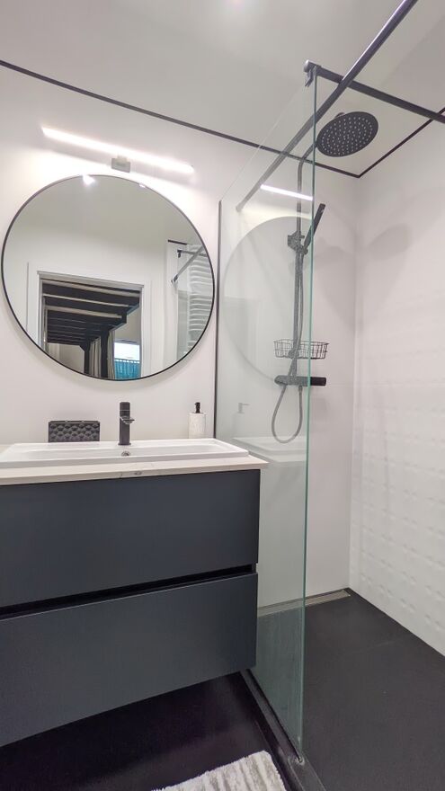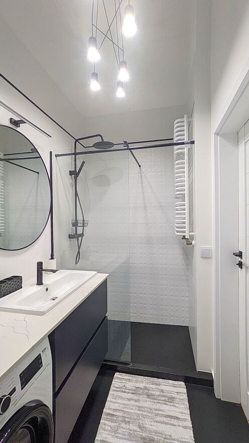 - łazienki z kabiną prysznicową oraz pralko-suszarką;