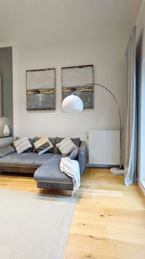 Lokal został urządzony w nowoczesnym stylu. Ze względu na wysokość sufitu 3,8m powstała dodatkowa powierzchnia z antresolą 12 m2,( wysokość 168m) która stanowi dodatkową przestrzeń w postaci sypialni i garderoby. Antresola została częściowo przeszklona i wyposażona w zasłony, które zapewnią Ci więcej intymności.