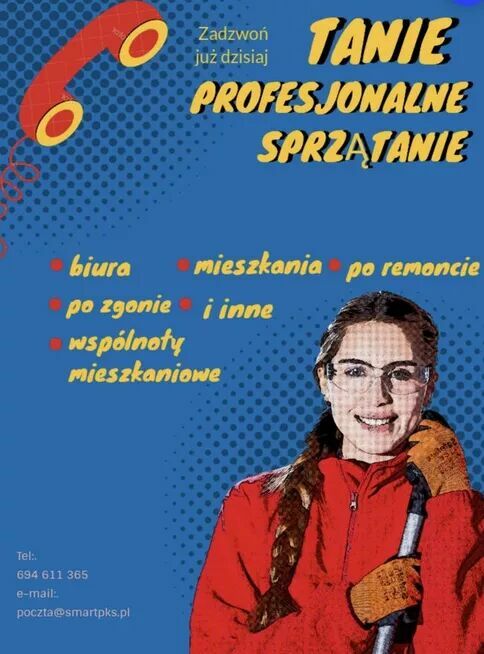 - Zakres usług:Mycie kostki brukowej, Mycie okien, Sprzątanie biur, Sprzątanie mieszkań i domów, Sprzątanie po remoncie