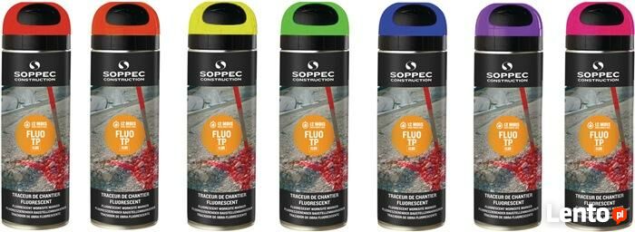 Niezastąpiona fluorescencyjna farba FLUO TP firmy Soppec w aerozolu do znakowania w każdych warunkach.-Rozpylanie tylko w dół specjalnie opracowany system do dokładnego oznaczenia punktu, całkowite wykorzystanie zawartości puszki dzięki zwiększonemu ciśnieniu w puszce farbę wykorzystasz farbę niemal w 100%,