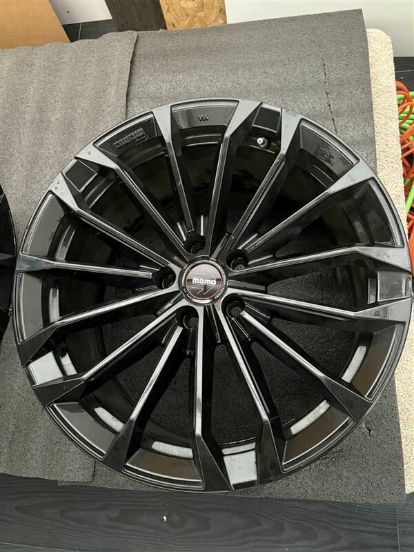 Sprzedam felgi MOMO RF-03 Gloss Black 9,50x19 i 9x19 5x112,00 ET35,00 komplet 4sztKoła pochodzą z mercedesa CLS 350 4matic C257 i mają rozstaw 5x112.