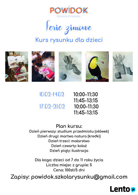 Ferie zimowe. Kurs rysunku dla dzieci w Powidoku
