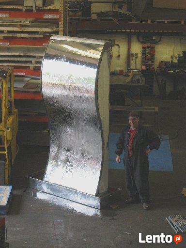 Unikatowa ekskluzywna fontanna, ściana wodna, gięta w kształcie litery S wykonana ze stli nierdzewnej kwasoodpornej.Wykonana z dbałością o szczegóły precyzyjne ręczne wykonanie