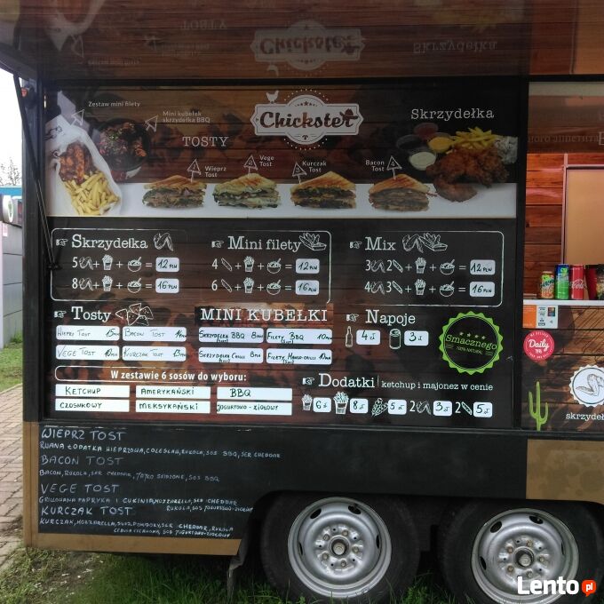 PILNIE SPRZEDAMW pelni wyposażony pojazd gastronomiczny,przystosowany do sprzedaży smarzonych potraw typu KFC i tostów.Oklejony z bardzo ładnym logo.Nowa instalacja elektryczna,sprzęt jeszcze na gwarancji fabrycznej.Ubezpieczony na rok,przegląd 11 miesiecy