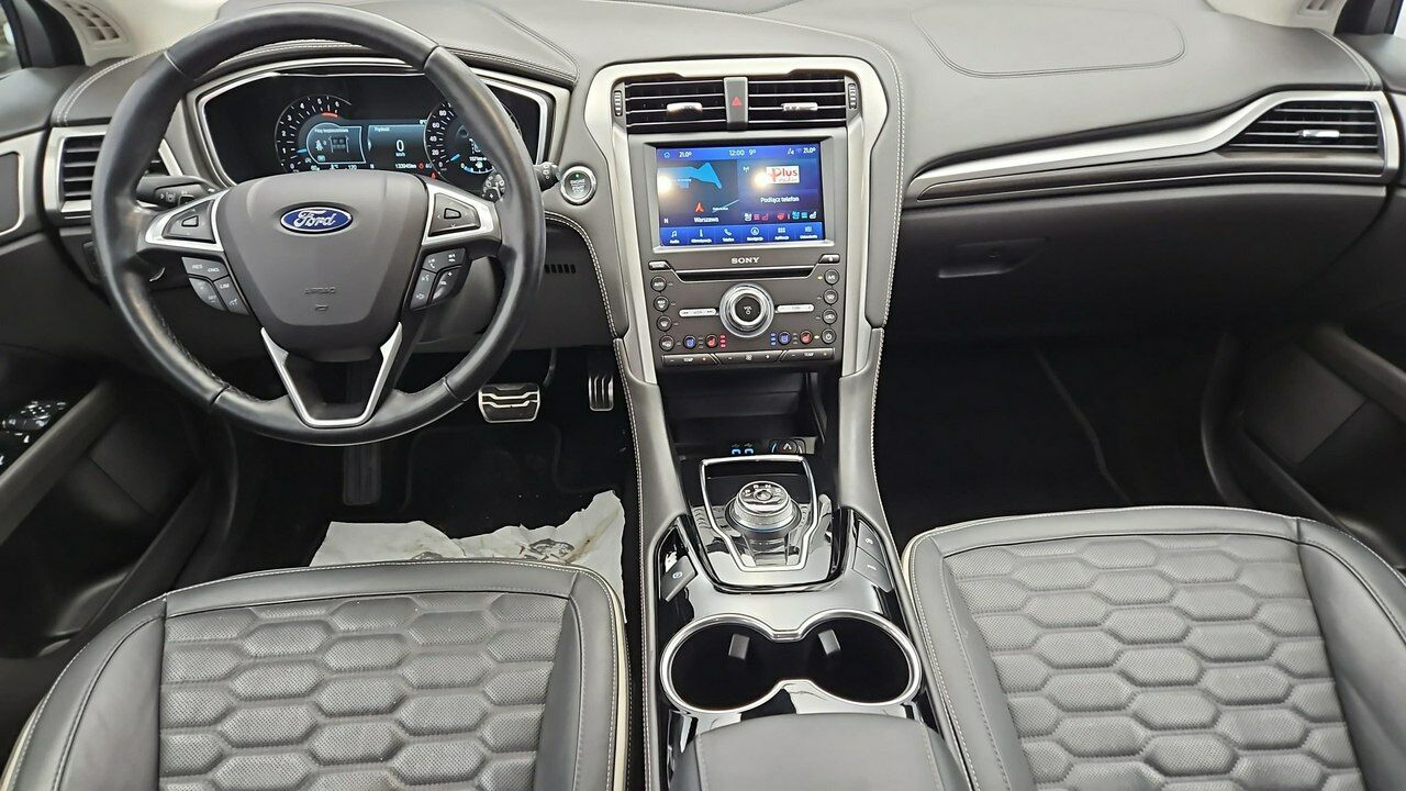 ❗❗<b>*** UWAGA !!! Ze względu na dużą ilość Klientów oraz szanując Państwa czas przed przyjazdem prosimy o kontakt telefoniczny lub mailowy celem umówienia oględzin, jazdy próbnej wybranym pojazdem. ***</b>❗❗ABS, Active Park Assist - system wspomagający parkowanie równoległe i prostopadłe oraz wyjazd, Aluminiowe nakładki na pedały, Blokada zapobiegająca otwarciu tylnych drzwi przez dzieci, Czujniki odległości przy parkowaniu, przód i tył, Deska rozdzielcza wykończona skórą, Drzwi bagażnika – zamykane i otwierane elektrycznie, Dywaniki welurowe Premium, z przodu i z tyłu, E-shifter - pokrętło do sterowania skrzynią biegów, EBD - elektroniczny rozdział sił hamowania, ESC - układ stabilizacji toru jazdy z kontrolą trakcji TA, EBA, Elektryczny hamulec postojowy, Felgi aluminiowe 18", wzór 5x3-ramienny, z ogumieniem 235/45, FordPass Connect z modemem GSM, Fotel kierowcy regulowany elektrycznie w 10. kierunkach, z pamięcią położenia, Fotel pasażera regulowany elektrycznie w 10 kierunkach, Fotele przednie - styl sportowy plus, Fotele przednie - wielokonturowe, z funkcją 11 punktowego masażu, wentylowane, Fotele przednie podgrzewane, Funkcja programowania i przypisania do kluczyka ograniczeń - Ford MyKey, Gniazdko 230V, HSA - system wspomagający ruszanie pod górę, Inteligentny System Bezpieczeństwa (IPS), Kamera ułatwiająca parkowanie tyłem, Kanapa tylna składana, dzielona w proporcji 60:40,ze składanym podłokietnikiem i uchwytami na napoje, Kierownica podgrzewana, Kierownica skórzana, Kieszenie w oparciach foteli przednich, Klamki drzwi w kolorze nadwozia, z chromowanymi wstawkami, Klamki wewnętrzne chromowane, Klimatyzacja - nawiewy w konsoli centralnej na drugi rząd siedzeń, Klimatyzacja dwustrefowa z automatyczną regulacją temperatury (DEATC), Kolumna kierownicy regulowana w dwóch płaszczyznach, Konsola centralna z podłokietnikiem, Konsola sufitowa ze schowkiem na okulary, Lakier metalizowany, Chrome Blue, Lampki do czytania w drugim rzędzie foteli, Lampki oświetlenia wnętrza z funkcją opóźnionego wyłączania, Lampy tylne LED, Listwy progowe lakierowane w kolorze nadwozia, Lusterka boczne regulowane elektrycznie i ogrzewane, w kolorze nadwozia, z kierunkowskazami, Lusterka boczne skł. elektr. z lampkami oświetlającymi podłoże, pamięć położ., lewe fotochromatyczne, Lusterko wsteczne przyciemniające się automatycznie, Nakładki na progi przednich drzwi - z aluminiowym wykończeniem w stylizacji Vignale, logo Vignale, Obramowanie szyb bocznych w kolorze chromu, Ogranicznik prędkości, inteligentny, Ogrzewana tylna kanapa, Oświetlenie wnętrza diodami LED z elementami nastrojowego oświetlenia, Pakiet dla palących (popielniczka, zapalniczka), Podsufitka w jasnej tonacji, Poduszka powietrzna kolanowa kierowcy, Poduszki powietrzne - boczne kurtyny powietrzne, 1 i 2 rząd siedzeń, Poduszki powietrzne – poduszki boczne dla kierowcy i pasażera z przodu, Poduszki powietrzne – poduszki czołowe dla kierowcy i pasażera z przodu, Przycisk rozrusznika Ford Power, Reflektory automatyczne, z czujnikiem zmierzchu, Reflektory w technologii Ford Dynamic LED, System Auto-Start-Stop, System Pre-Collision Assist wspierający kierowcę w unikaniu lub zmniejszaniu skutków kolizji, System aktywnej redukcji hałasu - Active Noise Control, System automatycznego sterowania światłami drogowymi - Auto High Beam, System centralnego zamka z kluczem elektronicznym Ford KeyFree, System monitorowania ciśnienia w ogumieniu (TPMS), System monitorowania koncentracji kierowcy (Driver Alert), System monitorowania martwego pola w lusterkach (Blind Spot Information z funkcją CrossTrafficAlert), System nawigacji sat.Sony CD/MP3/DAB+/Ford SYNC/wyś.8"/AppLink/TMC/Bluetooth/12 głoś./2xUSB/st.kier., System rozpoznawania znaków drogowych (Traffic Sign Recognition), System wspomagający utrzymanie pojazdu na pasie ruchu (Lane Keeping Aid), Szyba przednia podgrzewana (Quickclear) i podgrzewane dysze spryskiwaczy, Szyby boczne przednie z dodatkową warstwą akustyczną.