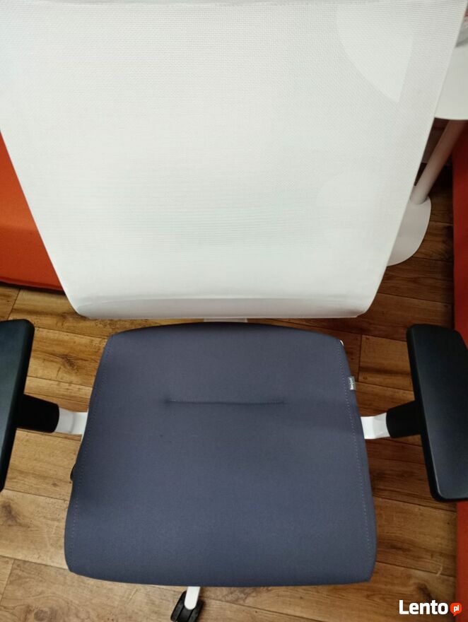 Fotel biurowy obrotowy Bejot granatowo biały na chromowanej bazie i kółkach.Doskonale sprawdzi się jako krzesło pracownicze we wszystkich przestrzeniach bez względu na to, czy trafi do wnętrza dużego open space, niedużego biura czy home office. Wyposażone w mechanizm synchroniczny, miękkie siedzisko i przewiewną siatkę oparcia pozwala na komfortowe siedzenie przez cały dzień pracy.