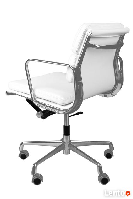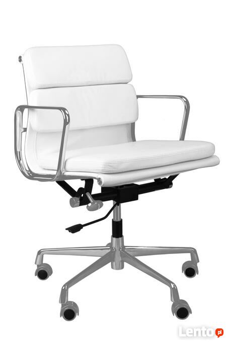 Biały fotel biurowy - skóra 2Krzesło jest bardziej ekskluzywną wersją krzesła inspirowanego EA117.