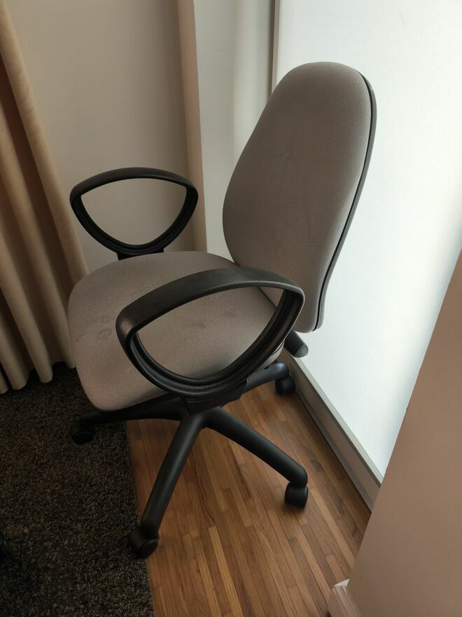 Wygodny, obrotowy fotel biurowy w neutralnym kolorze. Idealny do pracy w domu lub biurze. Posiada regulowane oparcie i podłokietniki, zapewniając komfort podczas długich godzin przy biurku. Odbior osobistyDamian