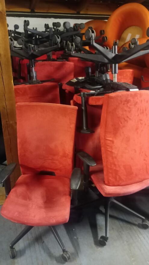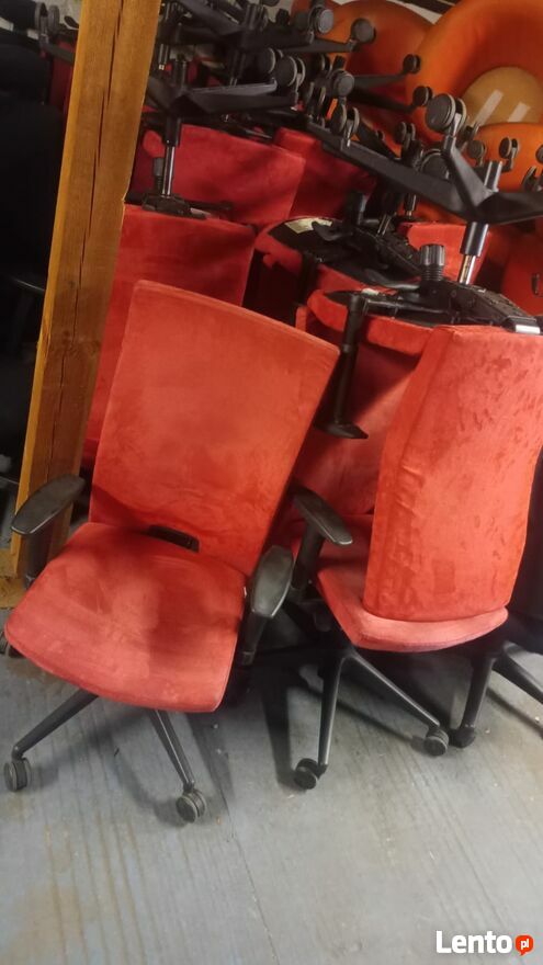 W ofercie fotele biurowe firmy Profim kolor czerwony welurowy.Regulacja wysokości siedziska,