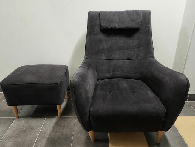 Wygodny, tapicerowany fotel w kolorze ciemnoszarym. Mebel jest używany, ale w dobrym stanie. Posiada miękkie, welurowe ...