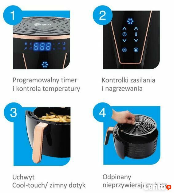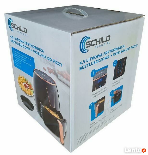 Frytkownica beztłuszczowa 5508CST LED Schild 4,5l 1500W + mini PIZZA patelnia beztłuszczowa 16cmZDROWE SMAŻENIE dzięki technologii HOT AIR
