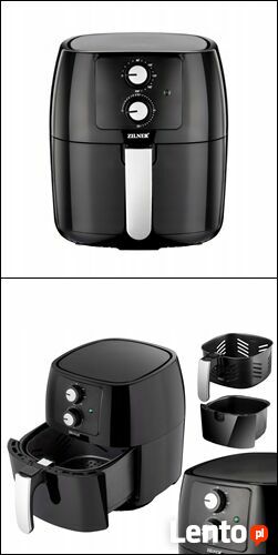 FRYTKOWNICA BEZTŁUSZCZOWA BEZOLEJOWA ZILNER 4,5L 1400WFrytkownica Zilner umożliwia szybkie przygotowanie potraw, a niskotłuszczowa zawartość sprawia, że potrawy są pyszne i zdrowe. Kombinacja pieca konwekcyjnego, grilla i frytkownicy - piecze, grilluje, podgrzewa, opieka, smaży, utrzymuje ciepło, rozmraża. Przy pomocy tego urządządzenia możemy przygotować potrawy takie jak frytki, warzywa, mięsa, ryby, ciastka. Technologia termoobiegu 360 stopni powoduje że przygotowywane potrawy są chrupiące na zewnątrz i miękkie w środku. Elegancki kształt i kolorystyka, idealny do każdej kuchni.